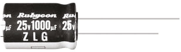 Kondensator 1000μF 6.3V dc Radialny, Otwór przelotowy Rubycon roztaw: 5mm 10 (Dia.) x 12.5mm