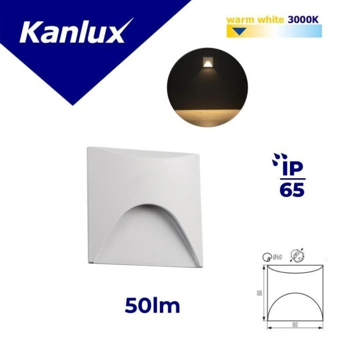 4. Oprawa przyschodowa LED kwadratowa EXIN LED L W-WW 2.5W 220-240 AC 50lm kl.I IP65 ciepła 3000K biały 39126 46.96