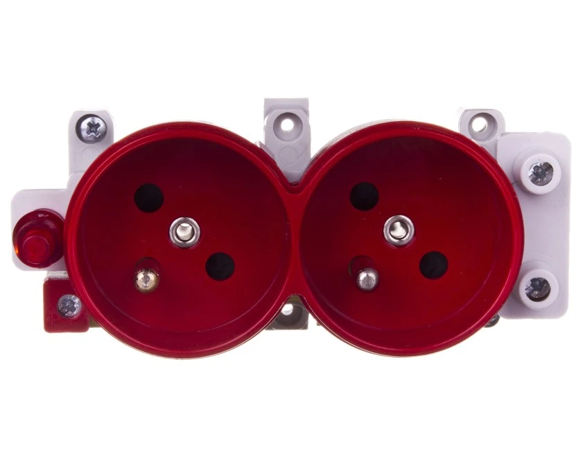 4. Simon Connect Gniazdo CIMA podwójne z/u 16A IP20 czerwone/ czysta biel S2/6/9 69.04