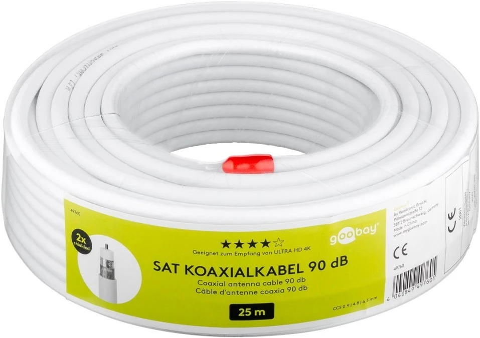 Kabel koncentryczny antenowy quattro, 90 dB, ekranowanie 2x, CCS, 25 m 49760