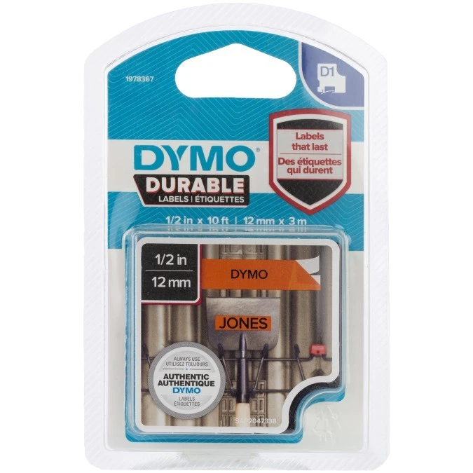 Taśma do drukarek D1 Durable 12mm x 3m czarny/pomarańczowy 1978367