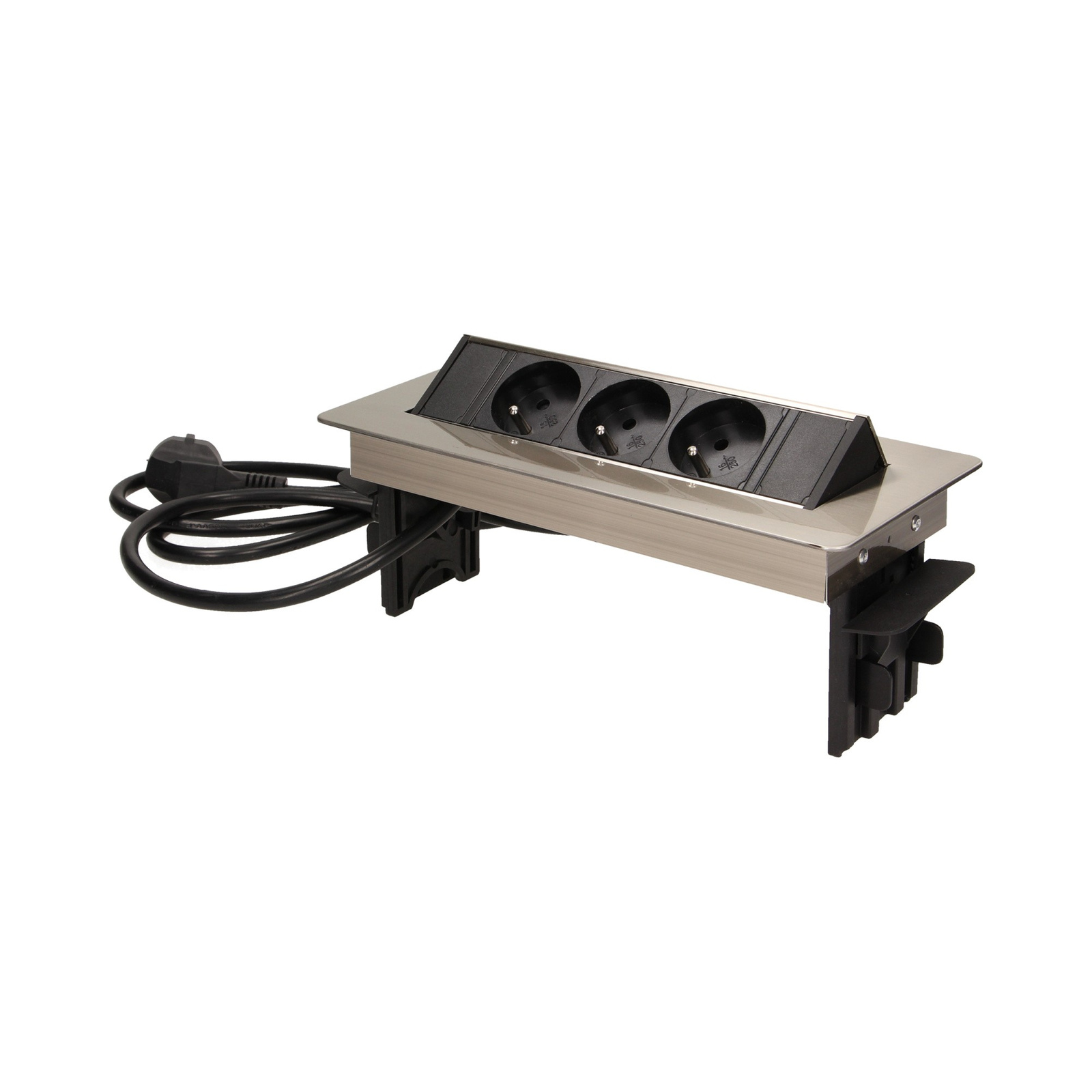 Gniazdo meblowe wpuszczane w blat w niklowanej obudowie z przewodem 1.8m. 3x2P+Z OR-AE-1363