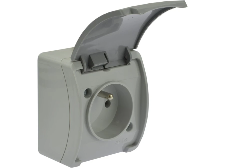 Gniazdo hermetyczne pojedyncze 2P+Z natynkowe IP44 szare Koala 161-08 61.375