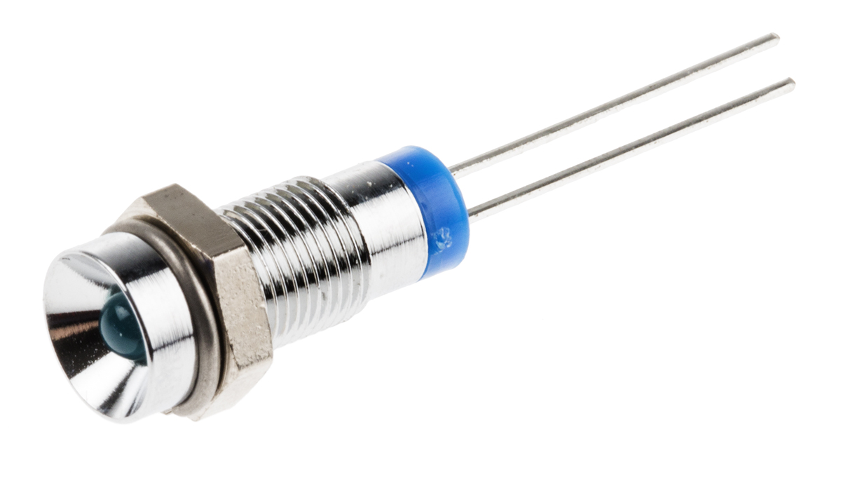 8. Lampka kontrolna do montażu panelowego 2V dc, niebieska 6mm LED Chrom Styk ołowiowy RS PRO 31.18