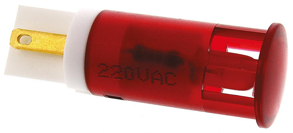 14. Lampka kontrolna do montażu panelowego 220V ac, czerwona 12mm LED Czerwony Faston, oczko lutownicze APEM 31.24
