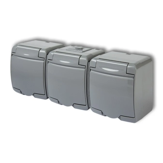 3. JUNIOR Gniazdo potrójne z/u (klapka dymna) popielaty IP54 10GHE-3d 53.85