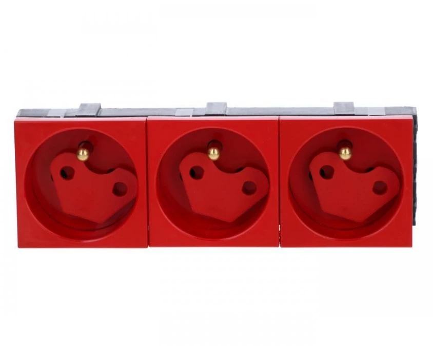 Gniazdo modułowe potrójne z blokadą i kluczem czerwone WP45X4577