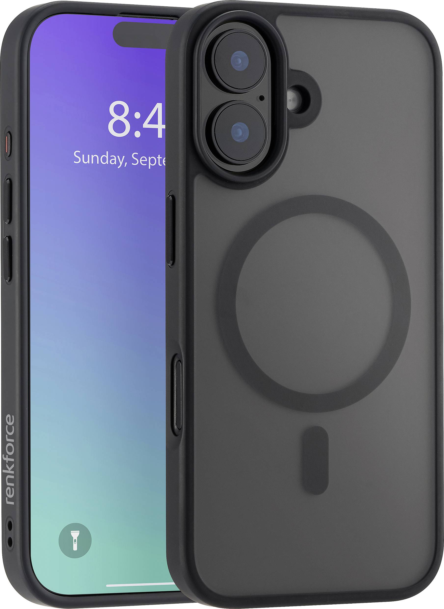 Renkforce RF-6676268 Futerał backcase Apple iPhone 16 czarny, przeźroczysty Ładowarka indukcyjna, Kompatybilny z MagSafe
