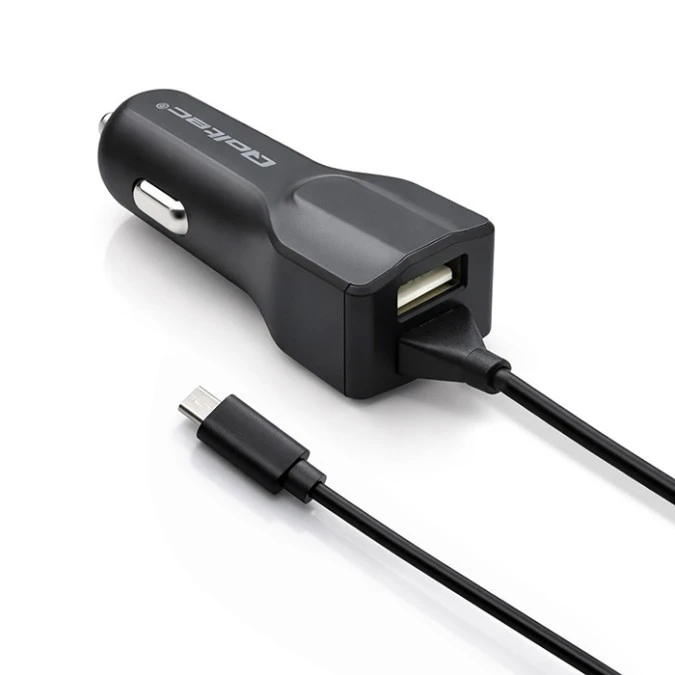 Qoltec Ładowarka samochodowa 12-24V 17W 5V 3.4A USB + kabel Micro USB