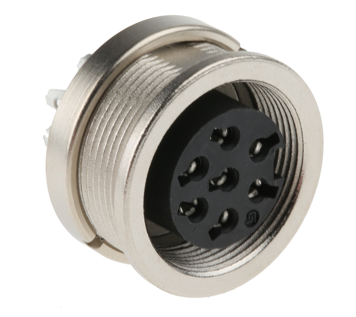 15. Złącze wielostykowe przemysłowe 7-pinowe M16, panelowe Gniazdo binder 44.70