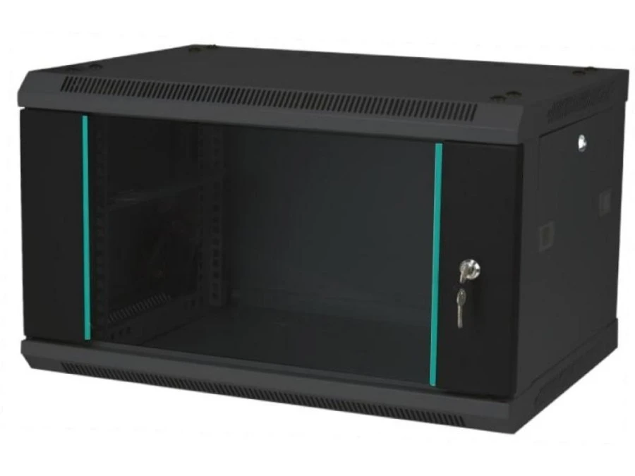 Szafa rack wisząca 19 cali 6U 600x450, drzwi szklane, tył i osłony boczne demontowalne, ZŁOŻONA kolor czarny ALANTEC