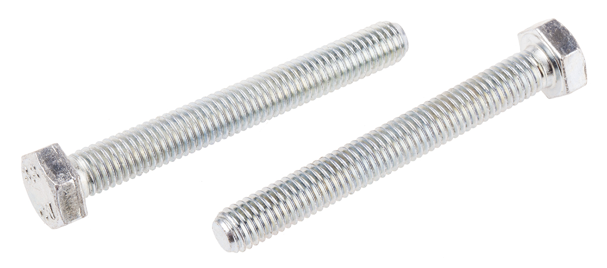 Śruba z łbem sześciokątnym gwint M8 65mm skok 1.25mm Stalowe Sześciokątny Powlekane jasnym cynkiem RS PRO