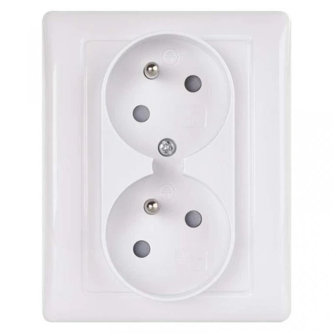 Gniazdo podwójne FRENCH IP20 błyszczące białe EMOS A6001.1