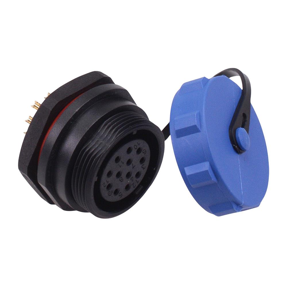 13. 12 Pin Waterproof W21 Female Socket Panel Mount Connector IP68 22.54