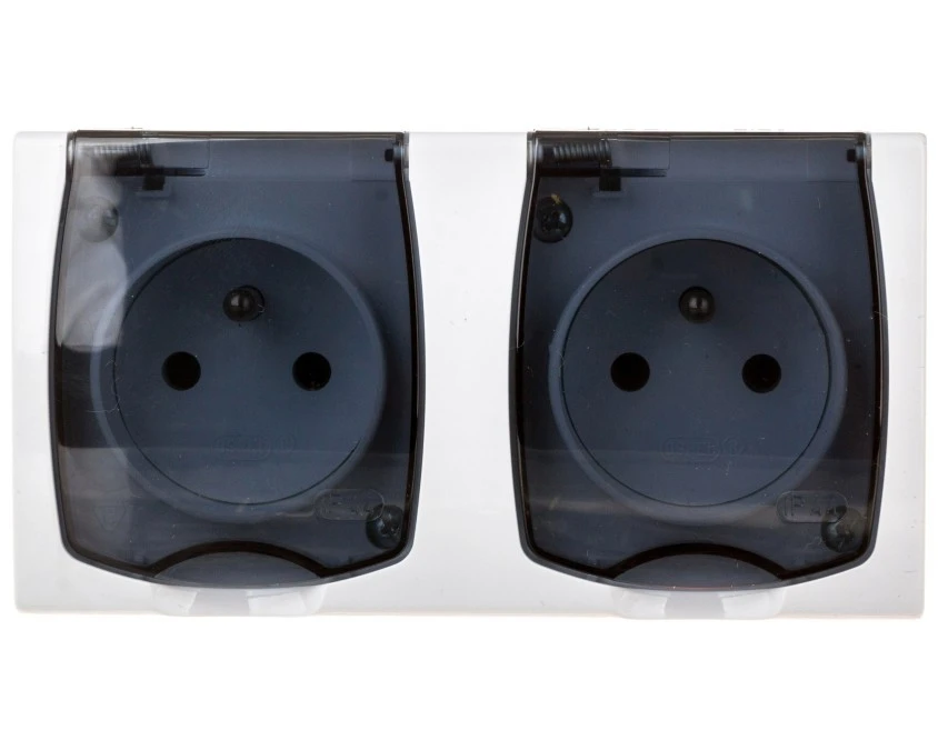8. MADERA Gniazdo hermetyczne podwójne z/u IP44 klapka przezroczysta białe GNH-2NZ/00/d 18.67