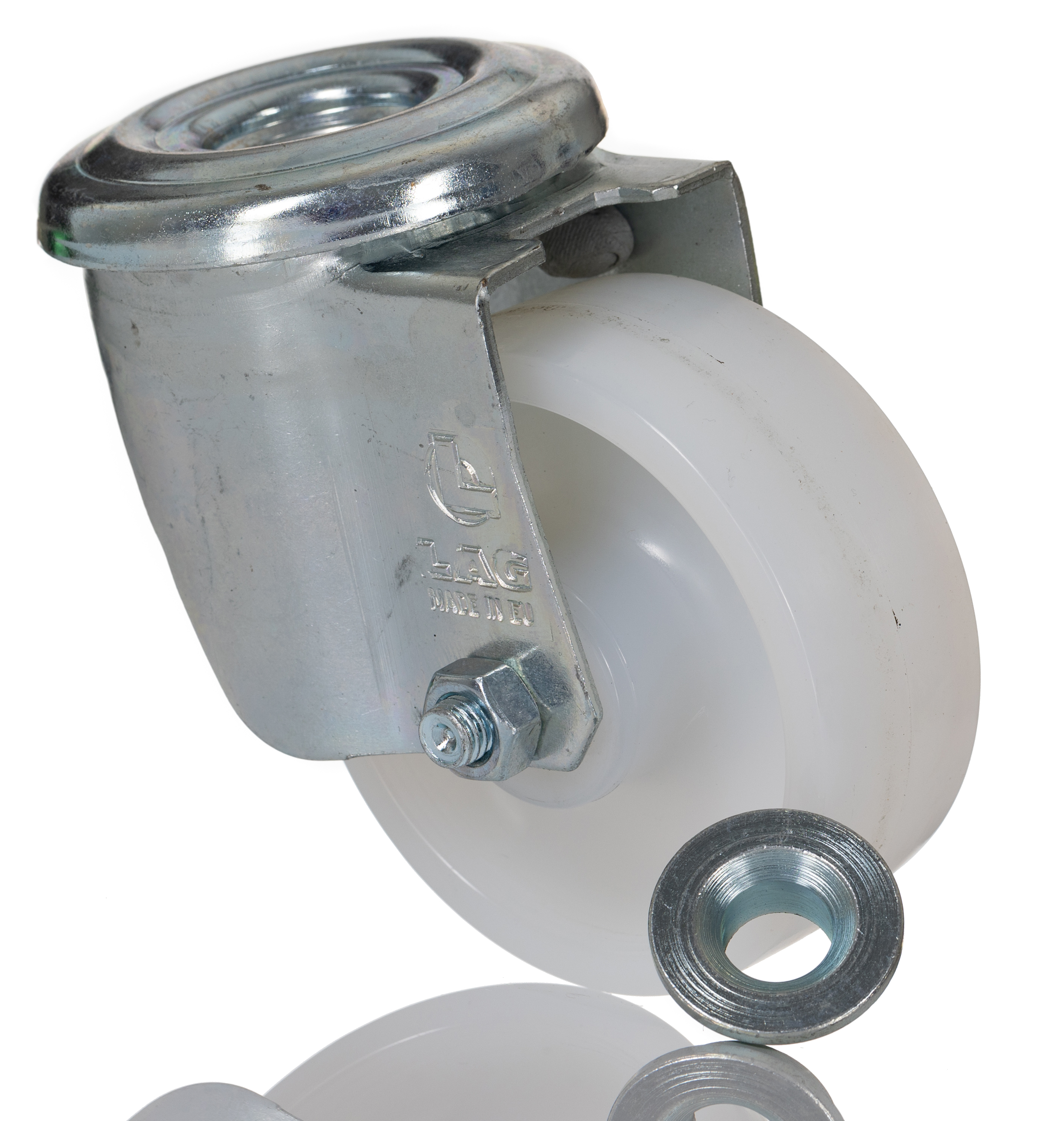 Koło samonastawne średnica kabla 80mm Otwór na śrubę LAG 120kg wysokość całkowita 106mm