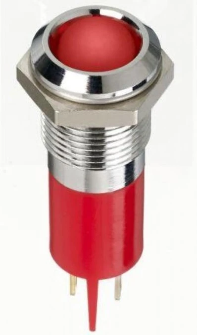 11. Lampka kontrolna do montażu panelowego 12V dc, czerwona 14mm LED Chrom Faston, oczko lutownicze RS PRO 65.04