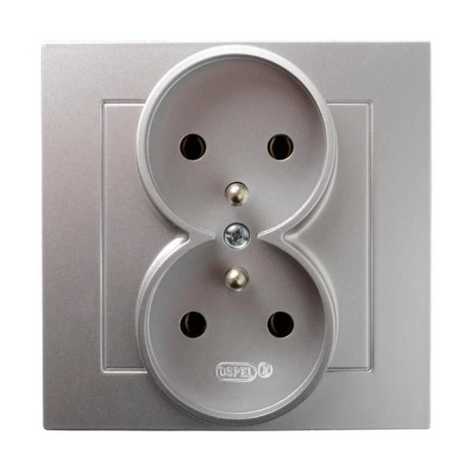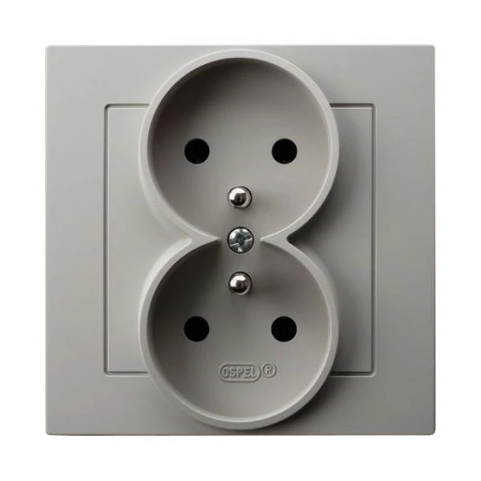 AS Gniazdo podwójne z uziemieniem z ramką srebrne GP-2GZ/18 OSPEL