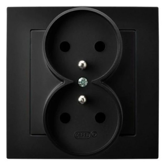 AS Gniazdo podwójne z uziemieniem kompletne z ramką czarny metalik GP-2GZ/33