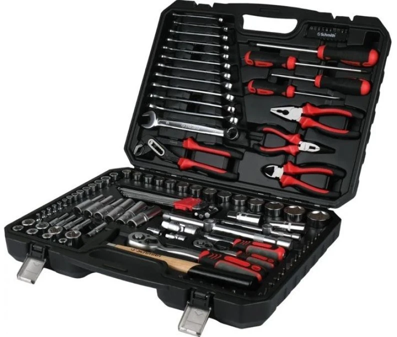 Zestaw narzędzi kluczy nasadowych 1/2 1/4 122szt młotek wkrętaki Schmith