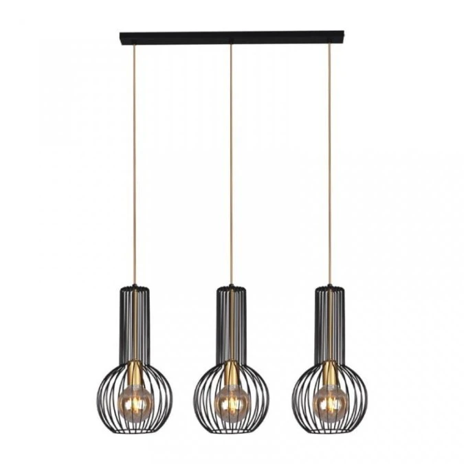 Lampa wisząca ARVI czarna, metalowe klatkowe klosze na E27 nad wyspę kuchenną K-4521 Kaja Lighting