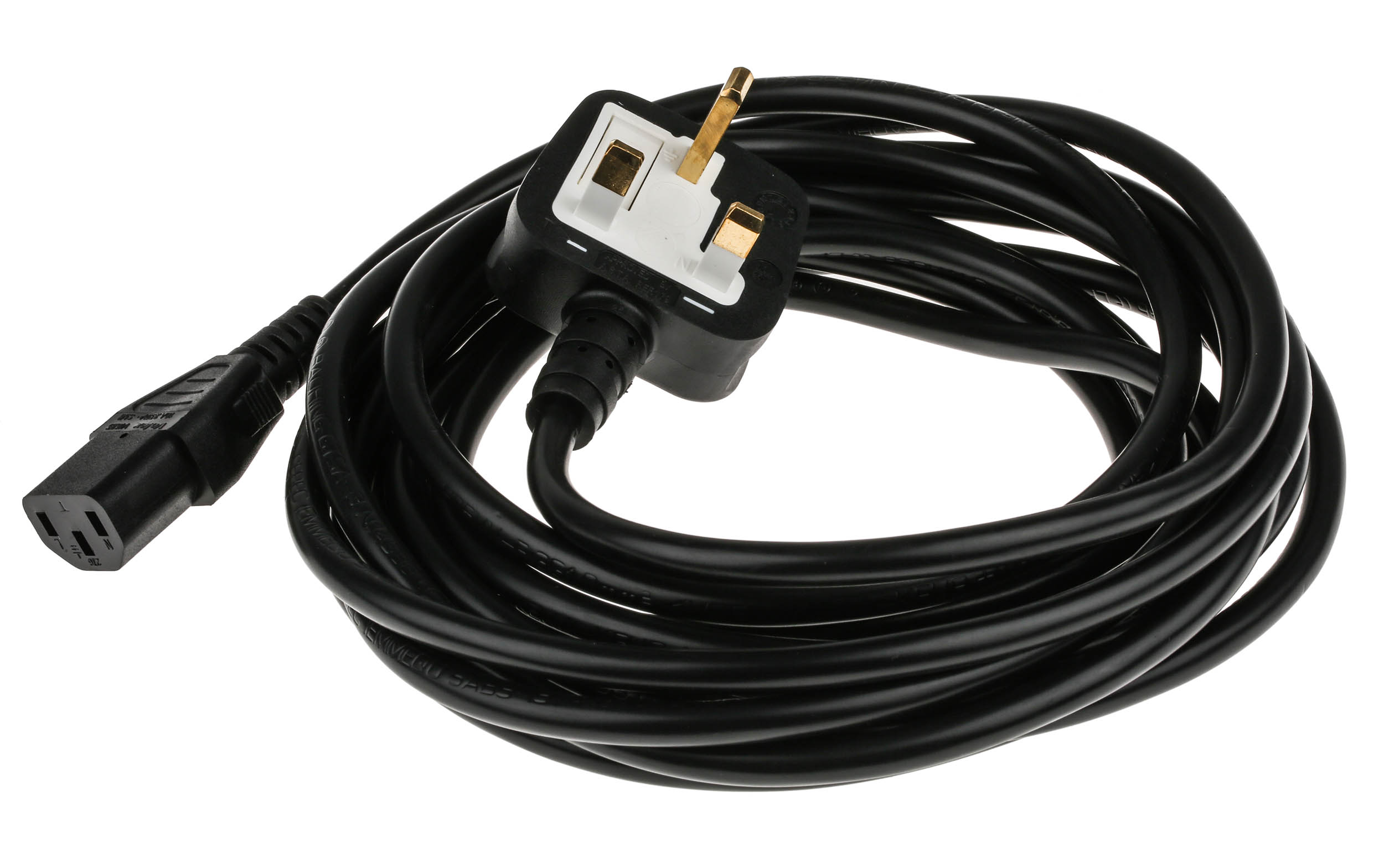 12. Przewód zasilania złącze A: IEC C13, złącze B: Wtyk brytyjski typu G 5m 10 A 250 V Czarny 125.42