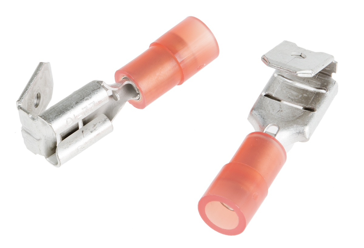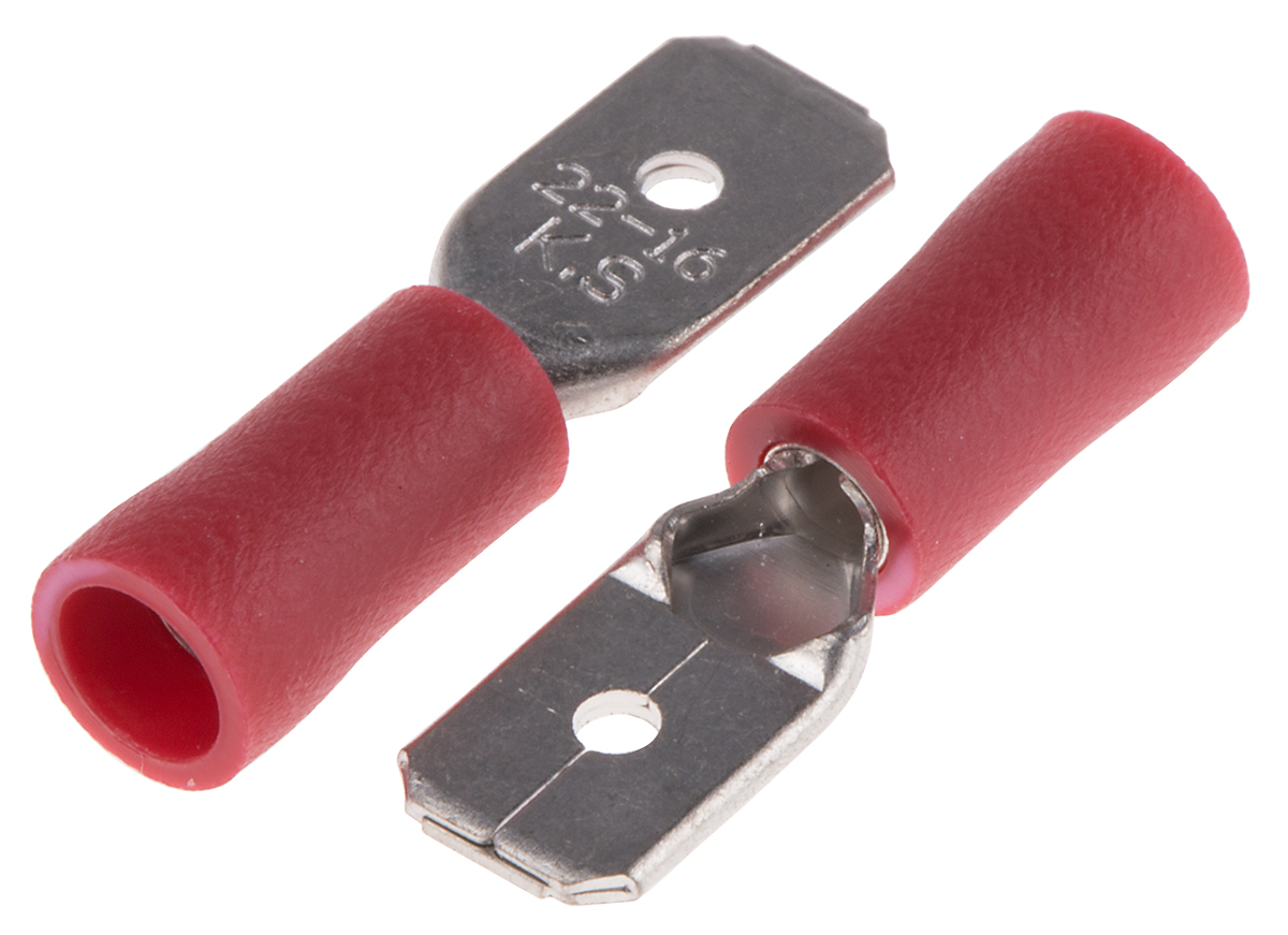 12. Konektor płaski Męskie do żeńskiego 6.35 x 0.8mm 0,5 → 1,5 mm², 22 → 16 AWG długość 21.5mm Izolacja: Izolowane Cyna 1.90 x100
