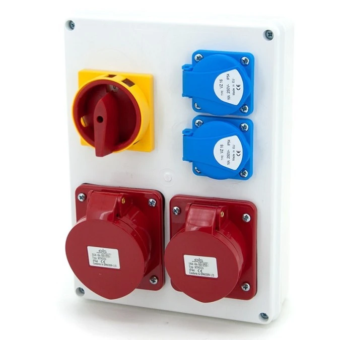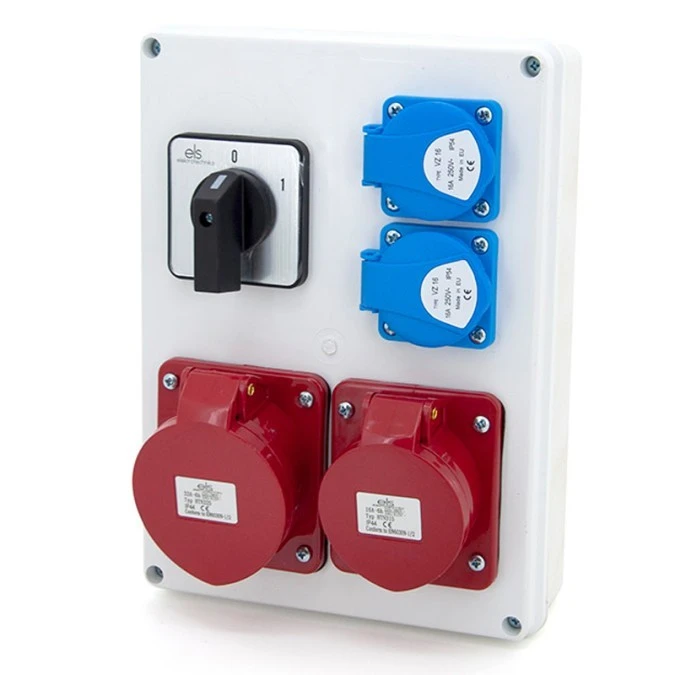 Rozdzielnia budowlana 32A/5 + 16A/5 + 2*GS 230V + wyłącznik 0-1, obudowa naścienna ELS Elektrotechnika, N211-01