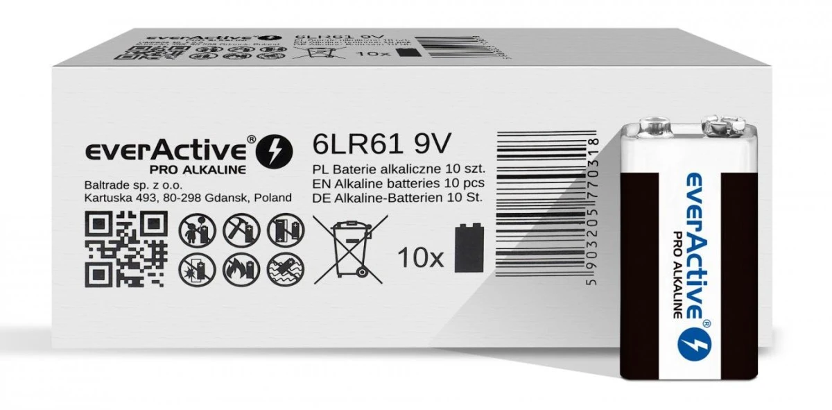 16. Bateria alkaliczna everActive Pro Alkaline 6LR61 9V - 10 sztuk 62.21