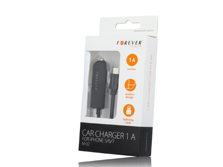 Ładowarka samochodowa do iPhone 8-PIN 2,1A M-01 czarna Forever