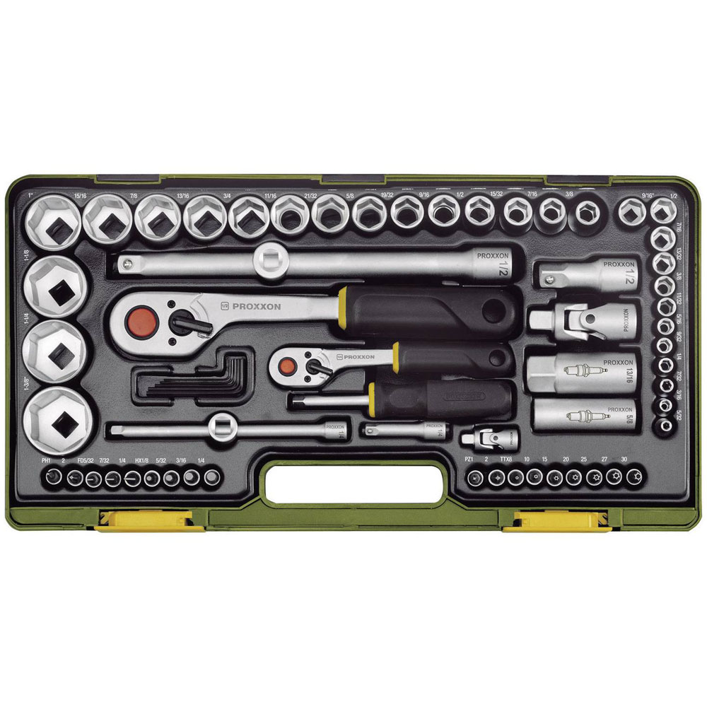 Proxxon Industrial 23286 Complete Set With 1/4" & 1/2" Baton Ratchets - 65 Piece