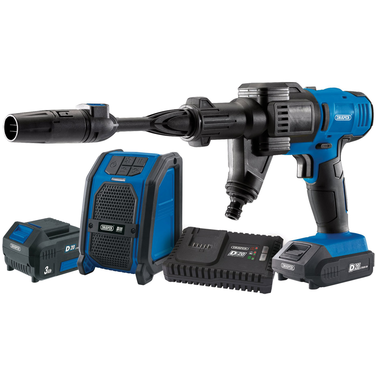 Draper 94796 D20 20V P/Washer D20 20V WL Speaker 1x2.0Ah 1x3.0Ah 1xFast Charger