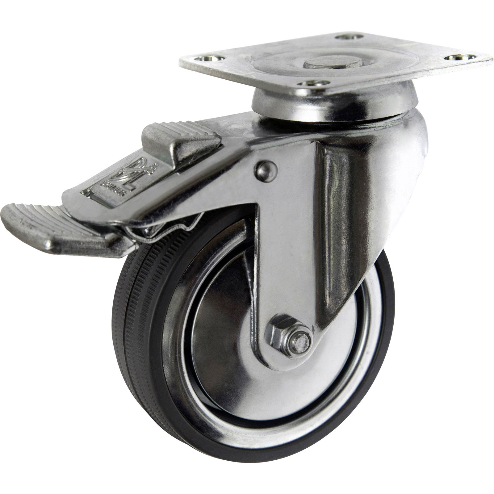 Draper 65474 75mm Dia. Swivel Plate Fixing Rubber Castor with Brake - S.w.l 70kg