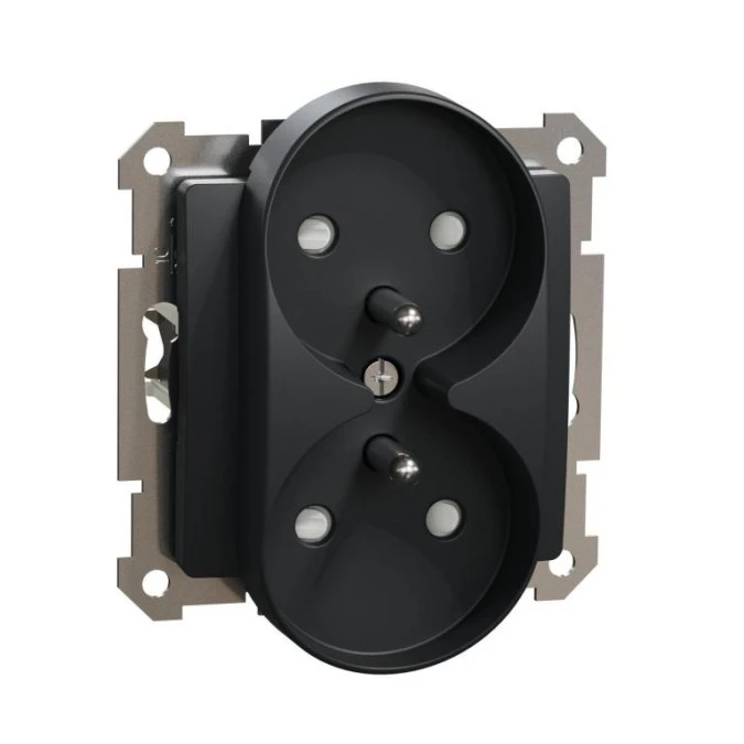 Gniazdo 2x2P+PE z przesł. do systemu ramkow. (do ramek Elements), czarny antracyt, Sedna Elements SDD114271