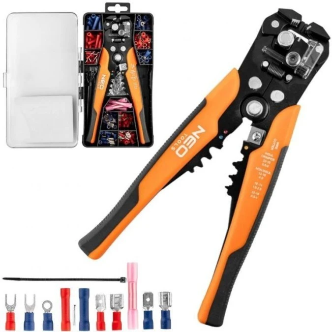 1. Automatyczny ściągacz izolacji uniwersalny 0,5-6mm2 do kabli solarnych PV czołowy 205mm z akcesoriami 01-542 NEO 76.94