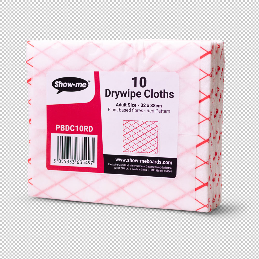 Show-Me PBDC10RD Pack of 10 Plant-based drywipe eraser cloths with Red design.