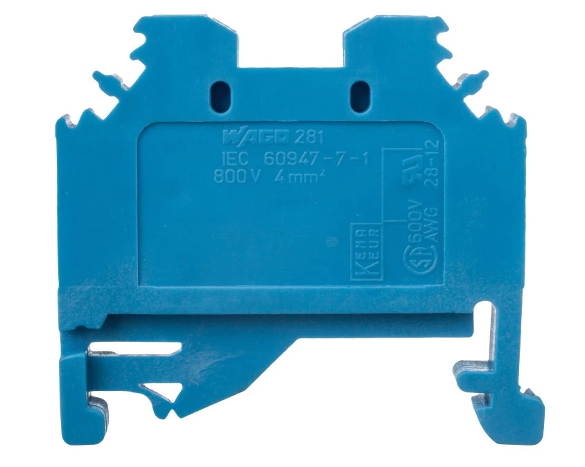 5. Złączka szynowa 2-przewodowa 4mm2 niebieska 281-104 5.63