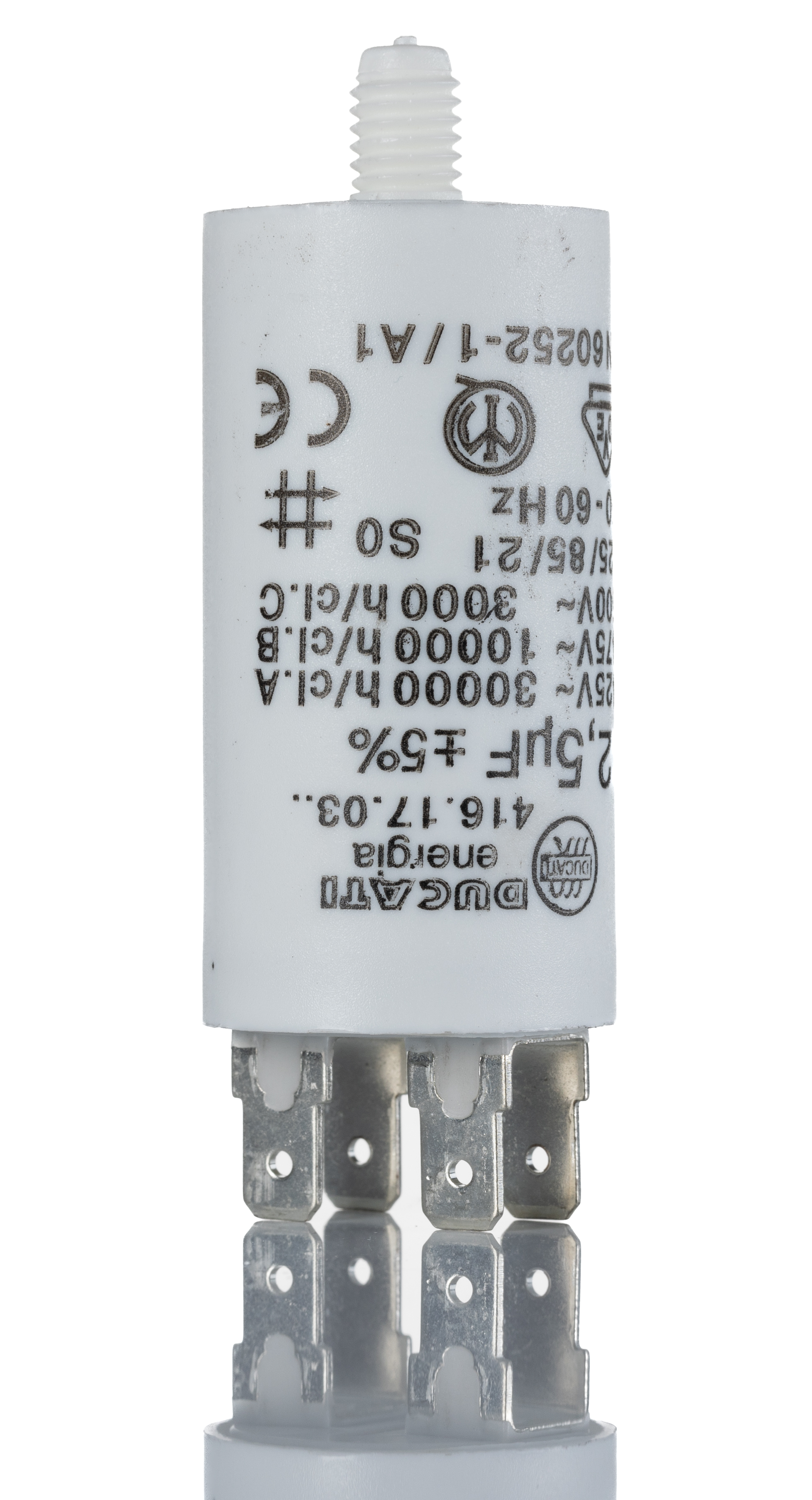Kondensator; do silników; pracy; 16uF; 425V AC; fi 40x70mm; -25+85*C; śruba +przewody; DUCATI ENERGIA; 416.10.23.14; RoHS