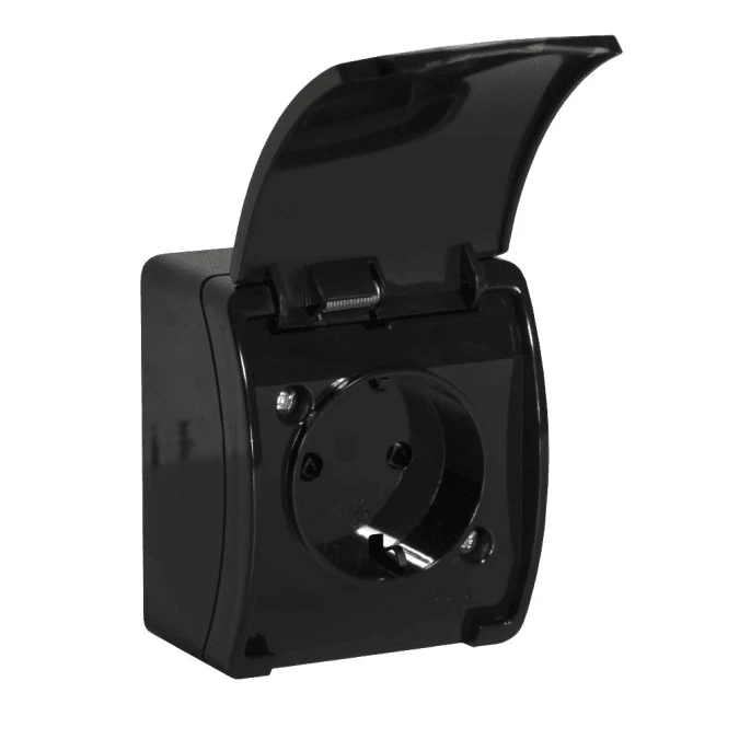KOALA Gniazdo pojedyncze SCHUKO natynkowe wodoodporne IP44 czarne 181-05