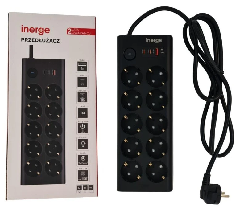 Przedłużacz INERGE 10-gniazdowy 2m ECS-1031PD-02-B