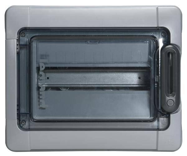 12. Rozdzielnica podtynkowa PRACTIBOX 4x18 modułów IP40 761x432x72mm drzwi transparentne dymne LEGRAND 346.23