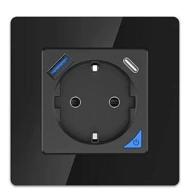 Inteligentne gnizodo SMART LIFE WALL SOCKET OUTLET 230V + SINGLE FRAME WIFI 1xUSB A 1xUSB C czarne EXTRALINK EX.35748