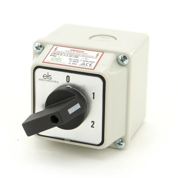 Łącznik krzywkowy 16A 0-1-2 3F w obudowie IP65 LW16 0-1-2 3P OB