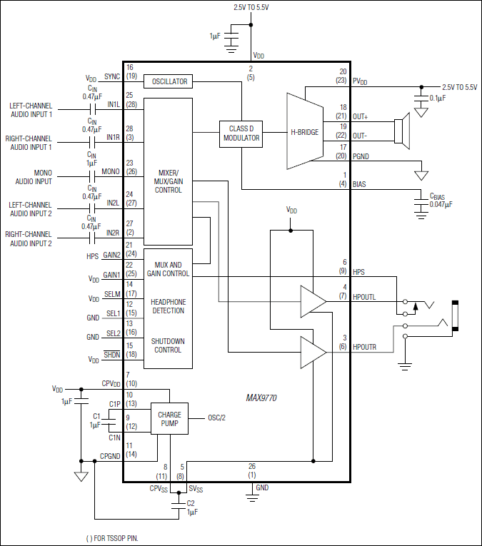1.2W, Low-EMI, Filterless, Mono Class D Amplifier with Stereo DirectDrive Headphone Amplifiers