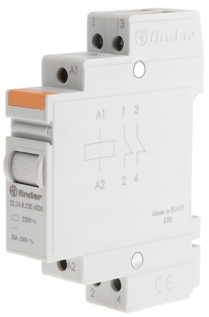 14. Przekaźnik mocy 230V ac DPST Finder 1.25W, na szynę DIN 4250Ω Śruba 171.90
