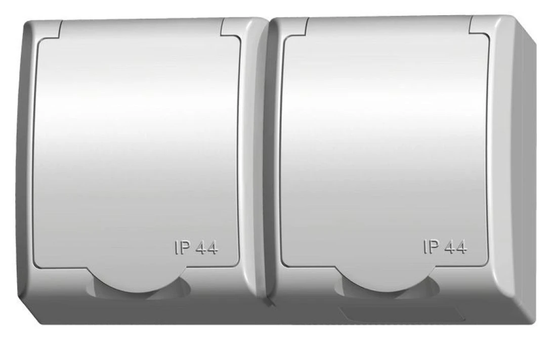 Delfina Gniazdo Hermetyczne Podwójne Z/U Schuko Ip44 Klapka Szara Gnh-2Ds/30/W