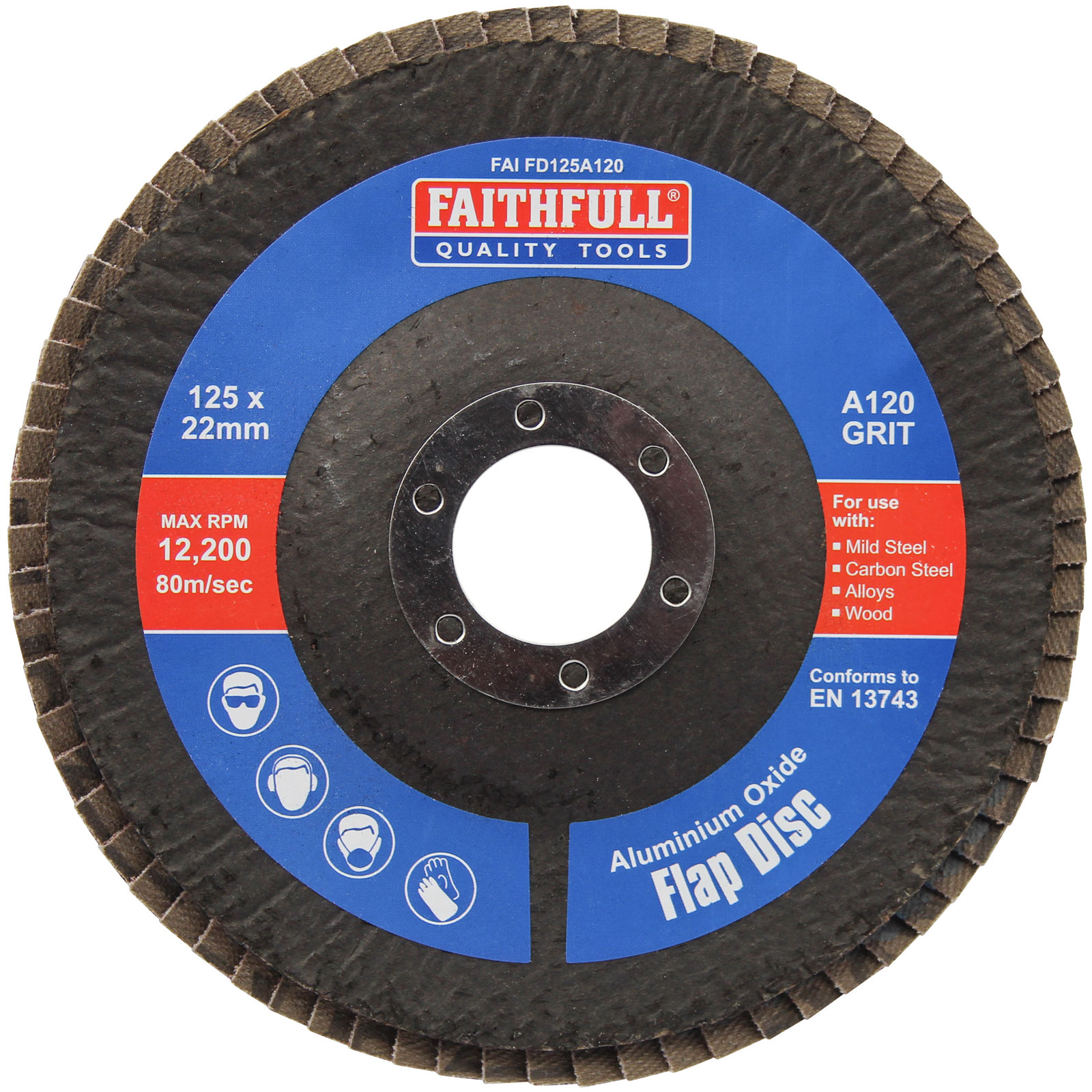 14. Faithfull FAIFD125A120 Aluminium Oxide Flap Disc 125 x 22mm 120 Grit 10.50