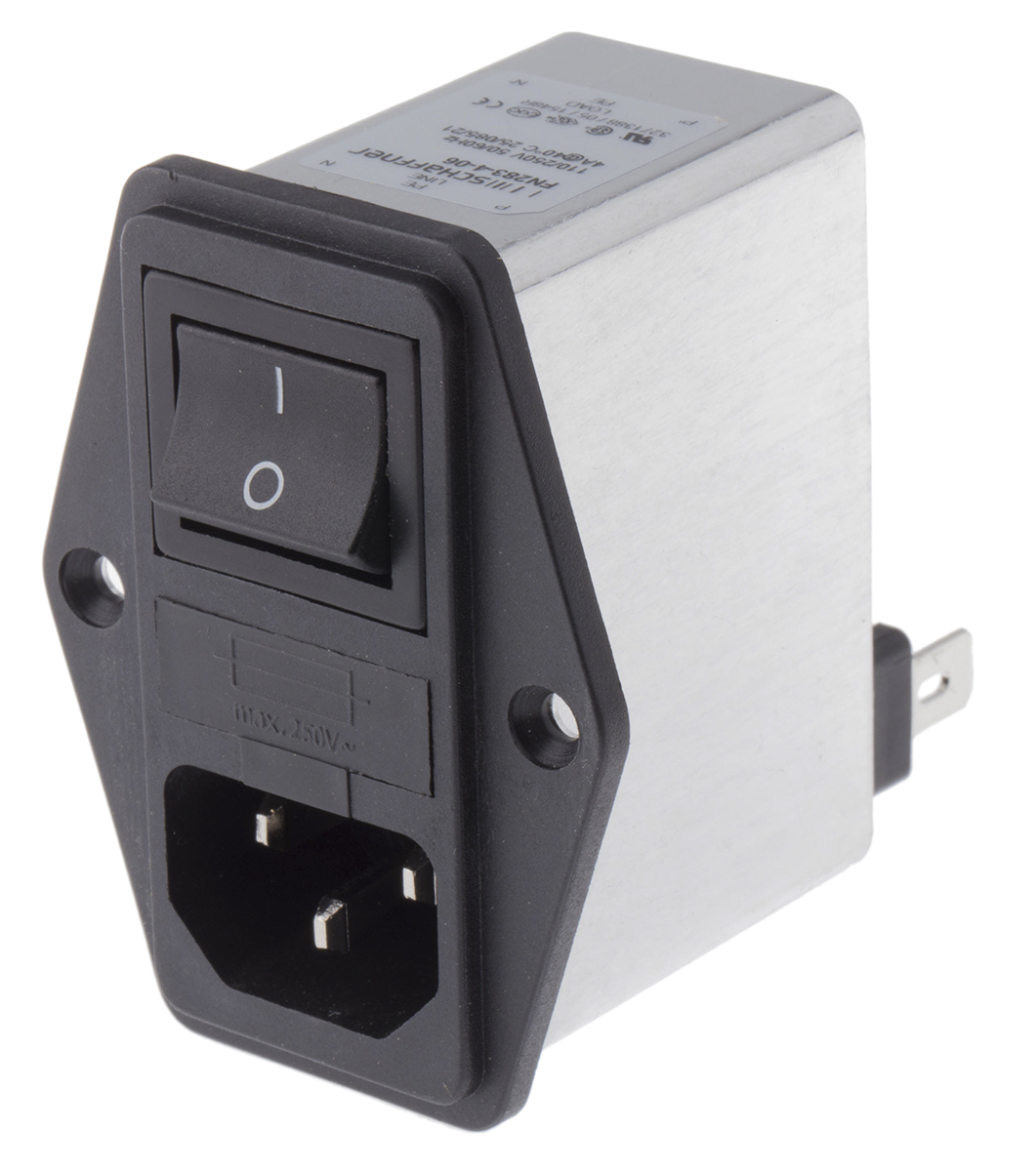 Filtr wejściowy złącza IEC1 4A C14 Schaffner Montaż na kołnierzu 5 x 20mm