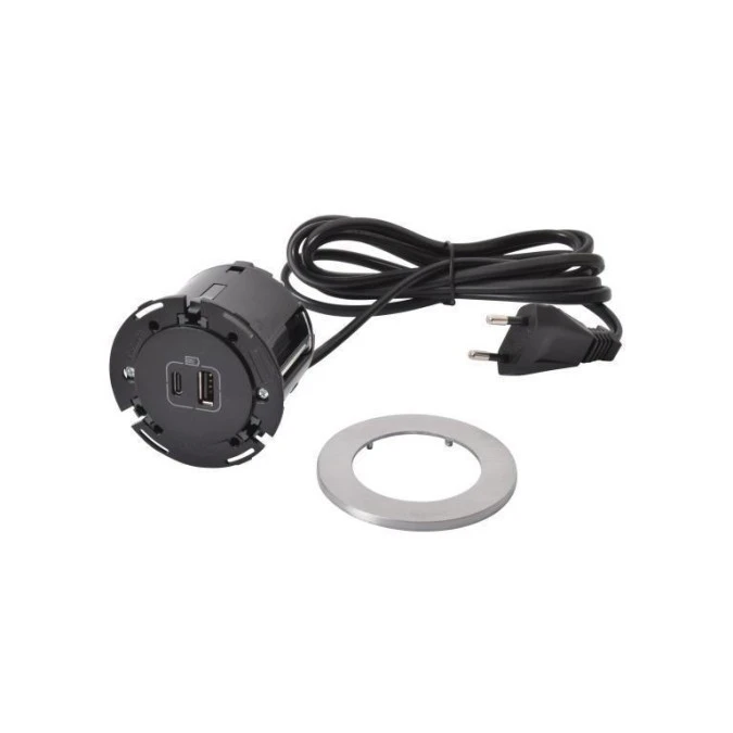 Incara Gniazdo Meblowe Disq 60 Usb A+C Z Pokrywą 2,0 M Czarny 654733