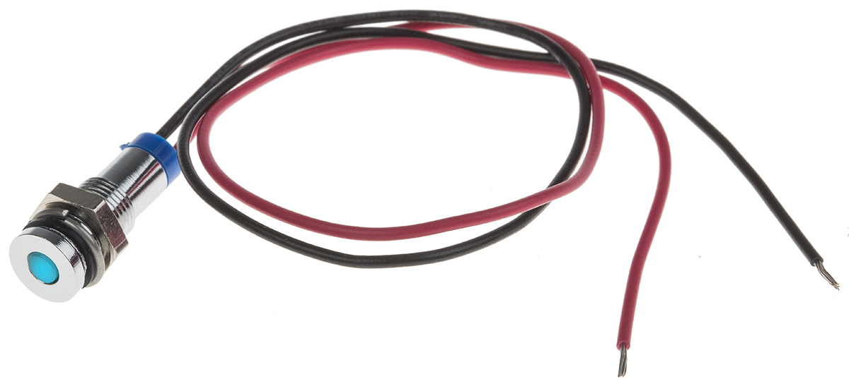 8. Lampka kontrolna do montażu panelowego 2V dc, niebieska 6mm LED Chrom Wyprowadzenia RS PRO 61.57